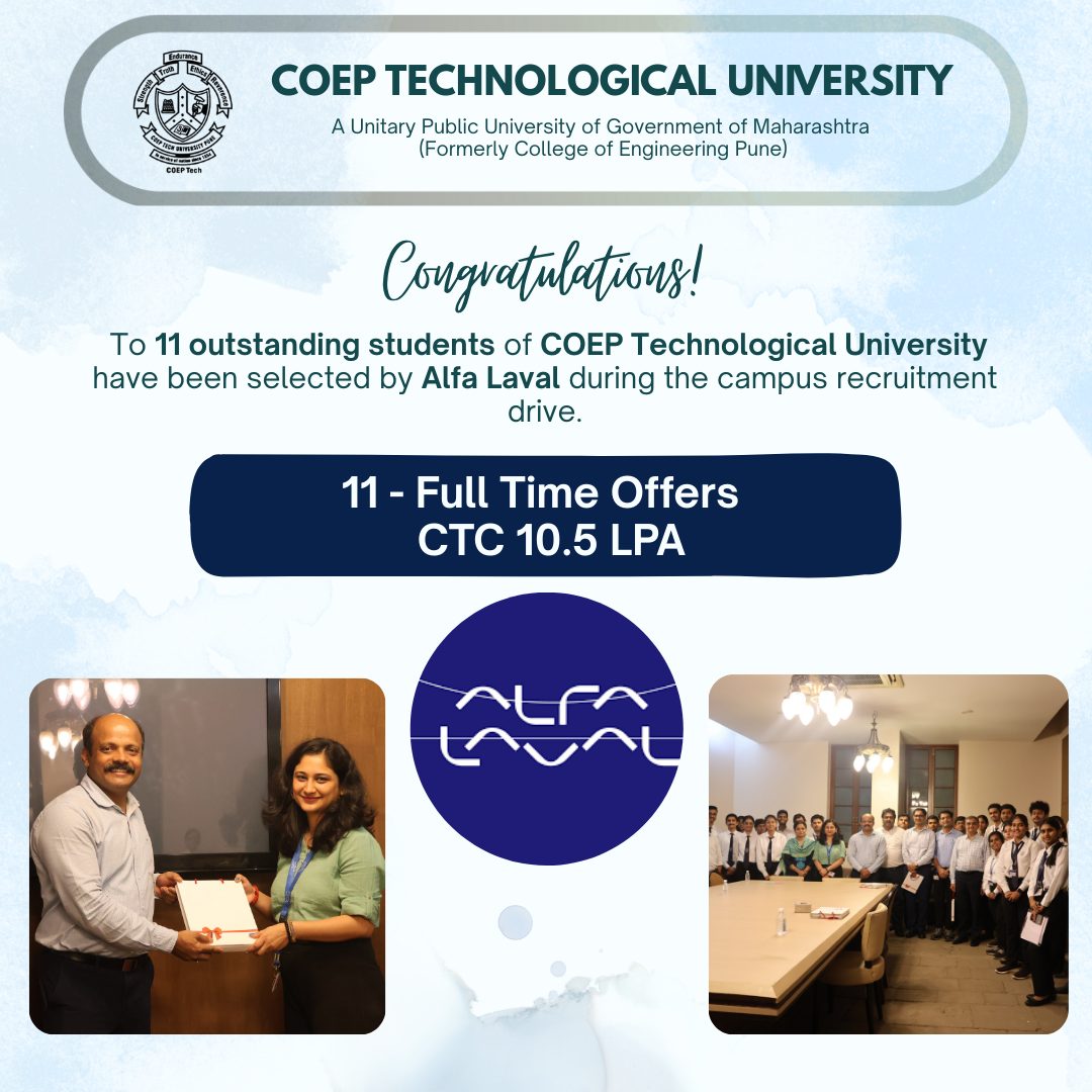 College of Engineering, Pune (CoEP), chartered in 1854 is a nationally respected leader in technical education. The institute is distinguished by its commitment to finding solutions to the great predicaments of the day through advanced technology.